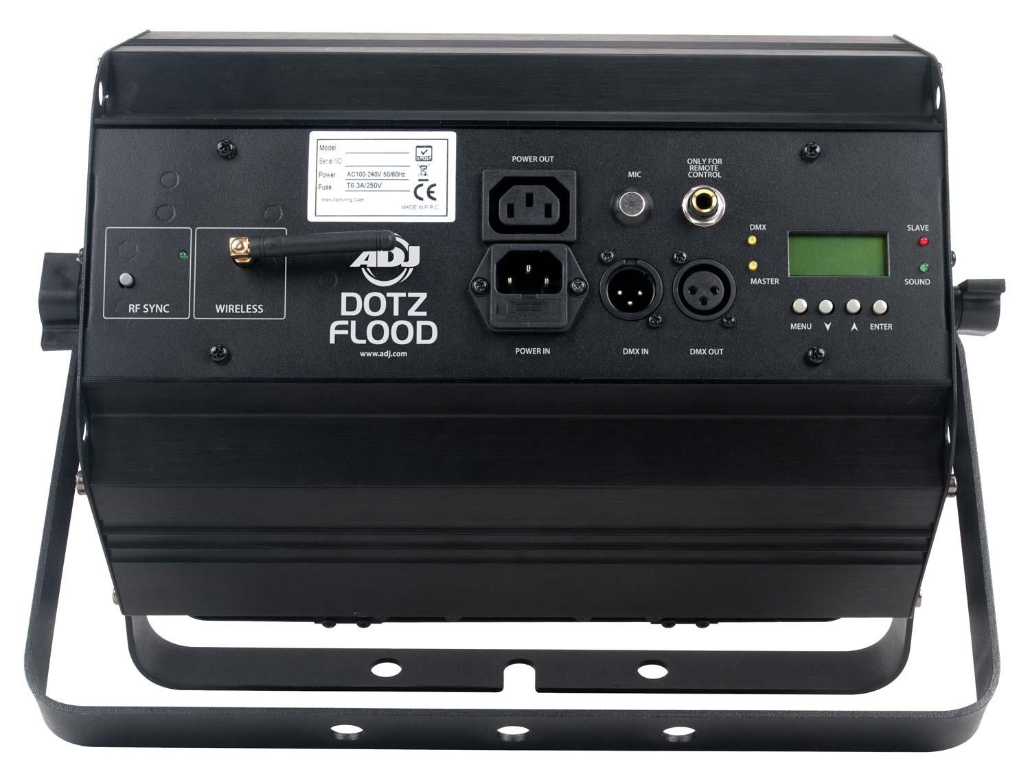 The fixture has many pro features such as: 0-100% electronic dimming, strobe/pulse effect, built-in shows and colors macros, and a 4-button LCD DMX display. Dotz Flood may run in its stand-alone mode from built-in programs, sound actively, or from a DMX Controller. It’s also compatible with the ADJ UC3 Series controllers.