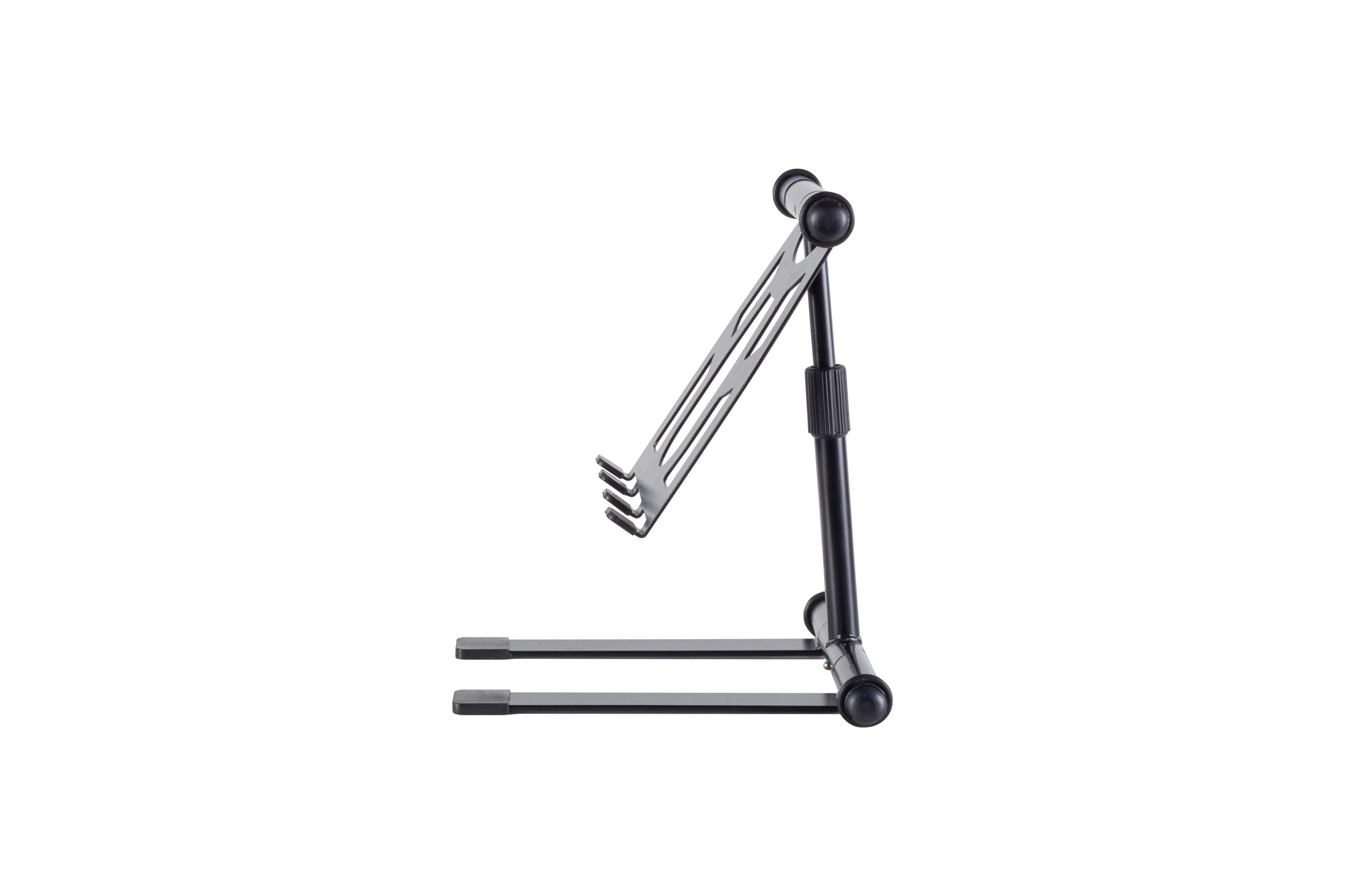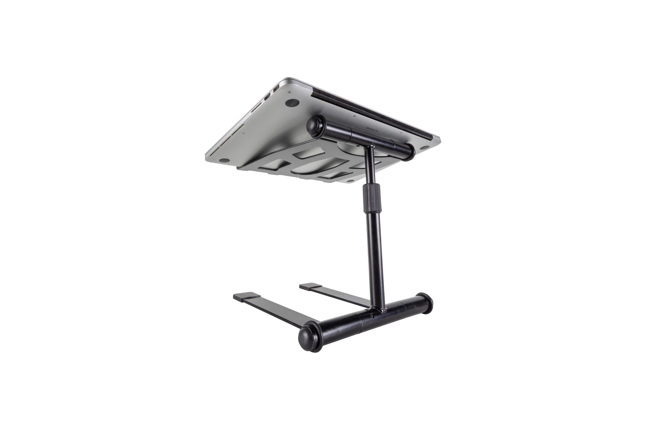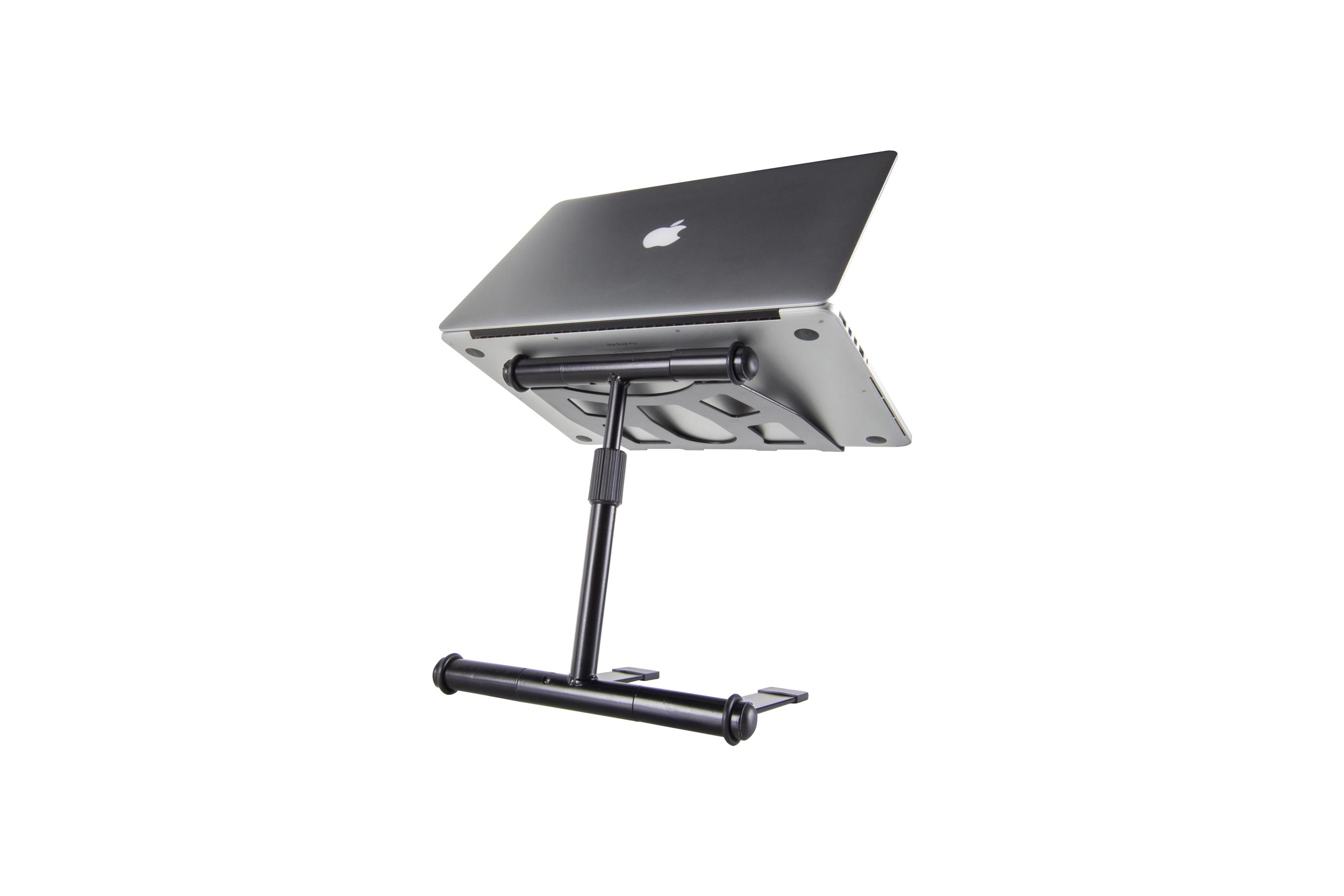 Whether at home, in the office or at a gig, the Headliner Noho laptop stand can be configured into the ideal setup for your application. It features a telescoping neck to adjust the height from 11″ to 16″ and a platter that rotates 360˚ horizontally, which allows the stand to be positioned at the center of your setup or off to the side. It can also be used at a 45˚angle, which makes it handy for use with tablets or other gear.