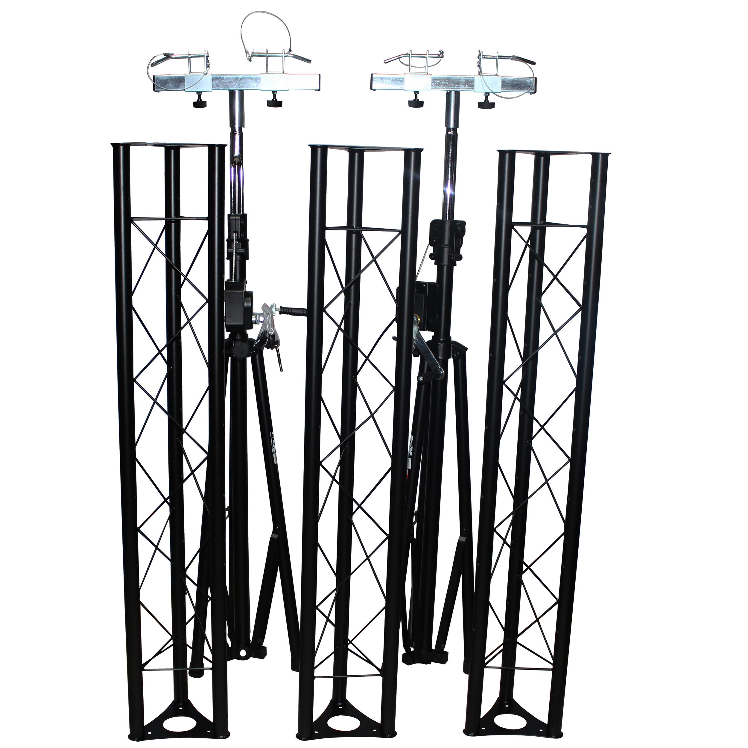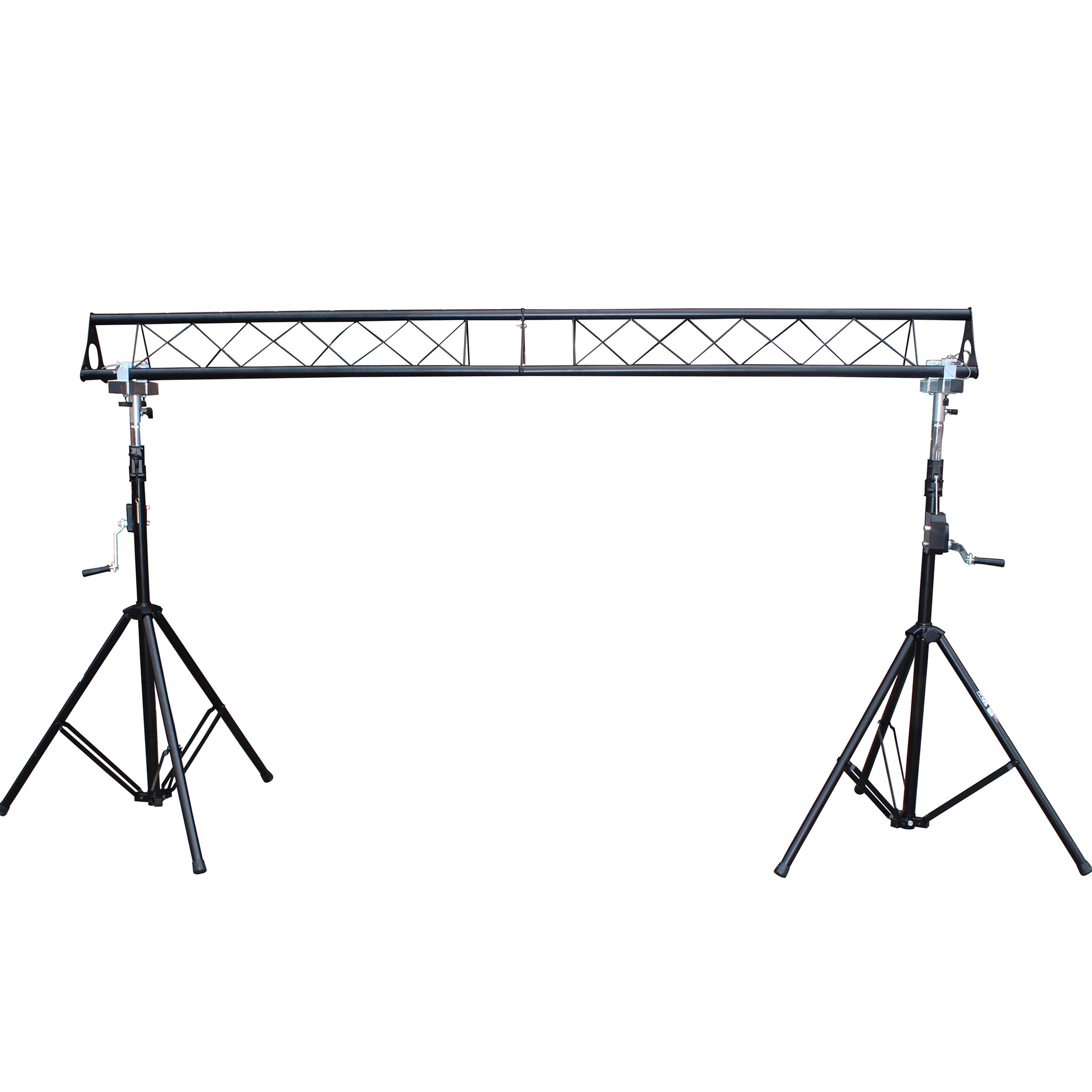 The ProX / Xstatic T-LS35C is a triangle crank truss system. This medium duty truss lighting stand package includes two high quality crank up stands & three 5FT triangle truss sections that create a 5ft, 10ft or 15ft span. The stand can safely reach to 9-10Ft. A pair T-Adapters are included so you may easily mount your truss to the stands. You can mount up to 200 lbs evenly. truss pipes are 1.5" in diameter. Truss sections are 6 inches in overall width.